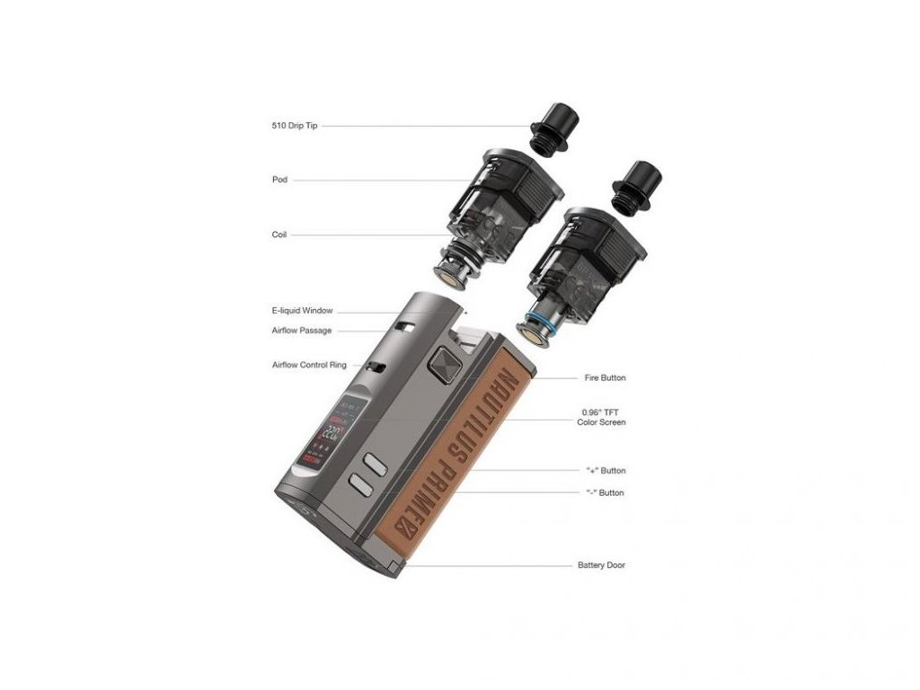 Elegantní křivky Nautilus Prime X zaručují perfektní ergonomii a kvalitní zinková slitina zaručuje bytelnost. Vložka z měkčené kůže dotahuje estetický dojem z tohoto PODu na maximální možnou úroveň. Bytelná dvířka jistí baterii bezpečně uvnitř zařízení a slibují dlouhou životnost.