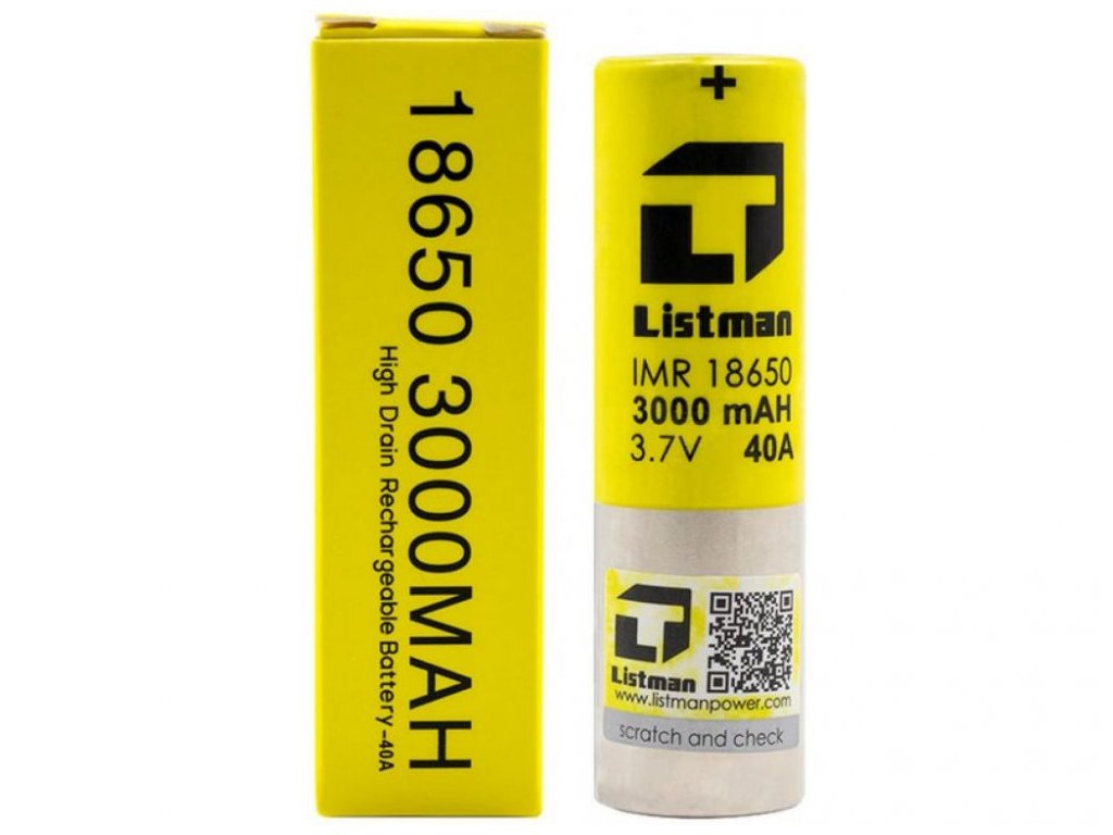 Baterie Listman typ 18650 s kapacitou až 3000mAh. Vhodná pro elektronické cigarety a další zařízení, které využívají baterie standardu 18650.
