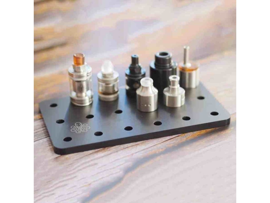 Zde přichází základna atomizéru Cthulhu Stand base. Jedná se o jednoduchý stojan, do kterého můžete současně dát až 18 atomizérů o průměru 22 mm / 24 mm / 30 mm. Cthulhu Hastur Atomizer Base je zdobena pískovaným povrchem.