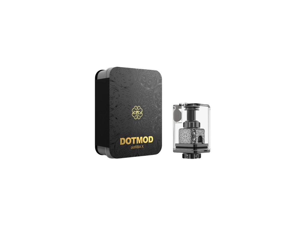 Po mnoholetém čekání Dotmod vydává zcela nový DotRBA X Tank. Ten je kompatibilní nejen s DotAIO, ale také s Boro zařízeními (pouze samotný bridge). Nabízí objem 3,5 ml, jednospirálkovou, bezpostovou základnu a regulaci airflow skrze AFC redukce. Díky nim lze potah nastavit od MTL až po DL.