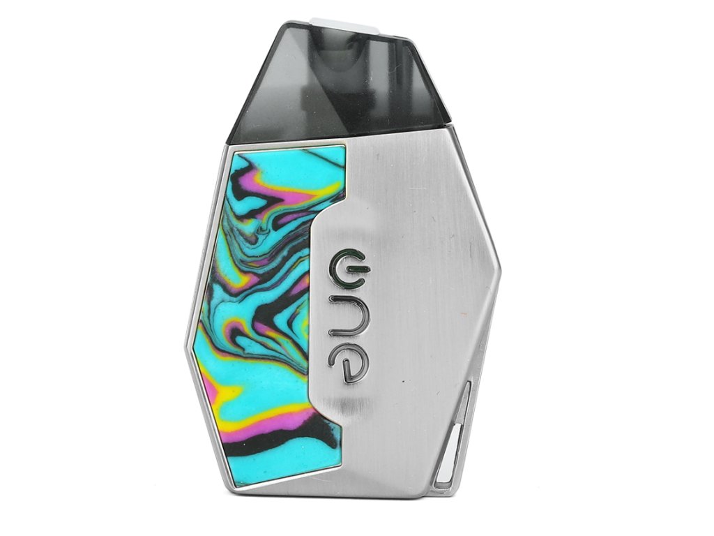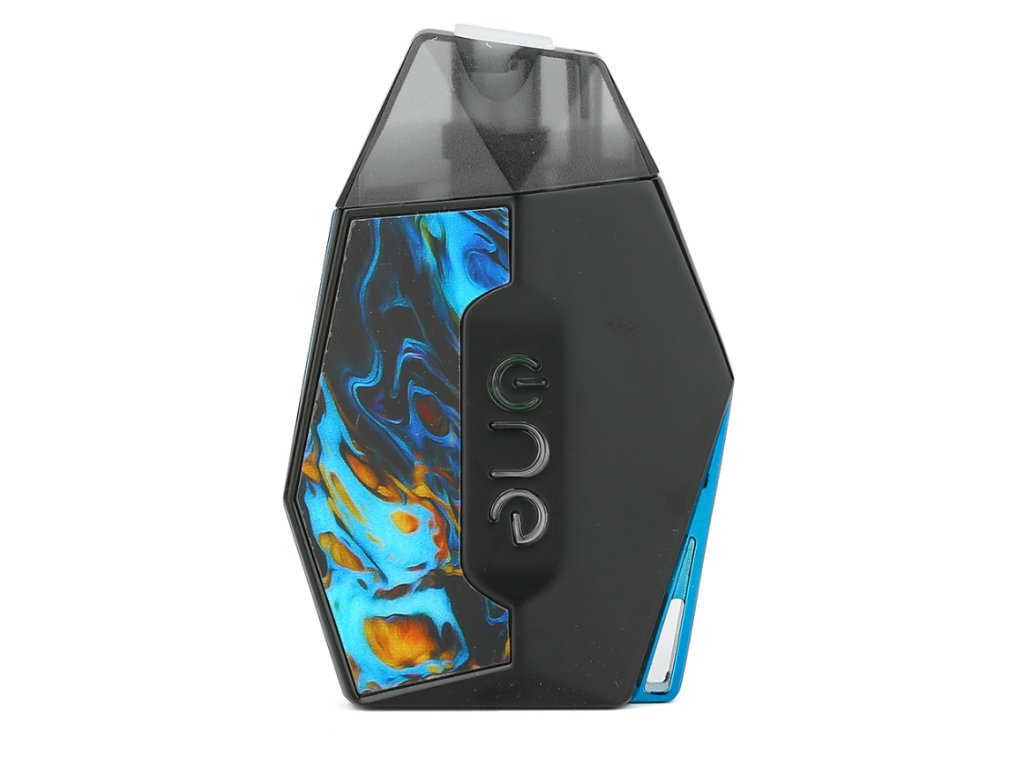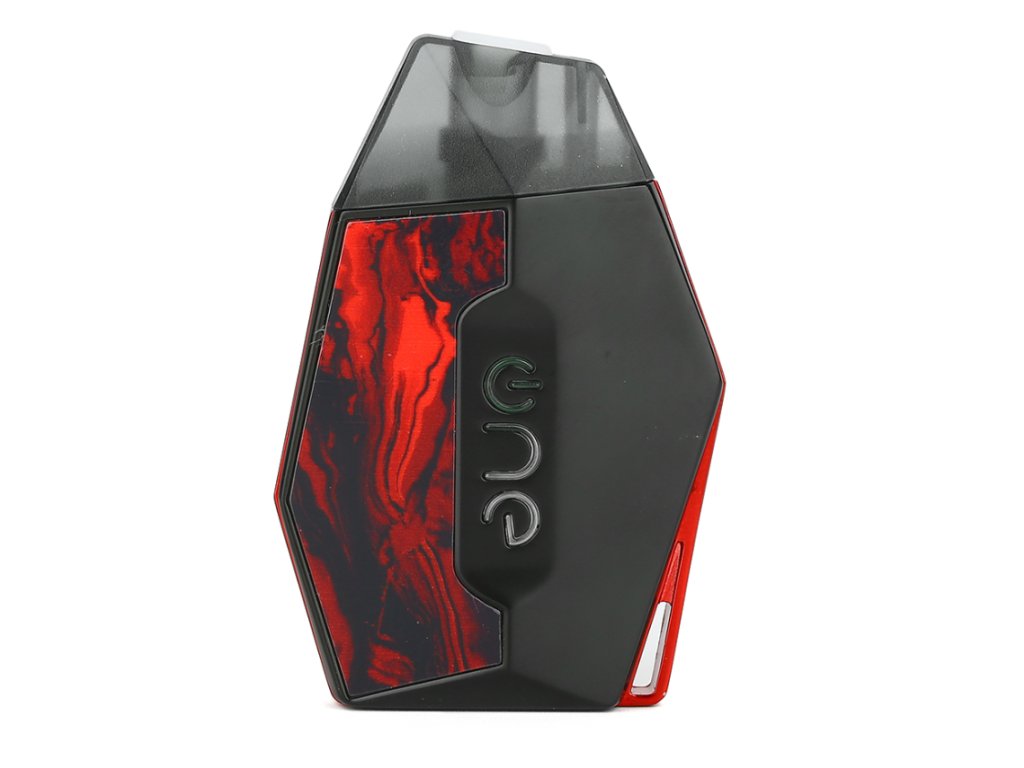 OneVape Lambo je velmi kompaktní POD zařízení, díky prémiovém designu však zapůsobí kromě své hlavní funkce právě vzhledem. Extravaganci mu dodávají nepravidelné boční hrany, začínající už u vyměniterlného naústku s 2ml nádržkou pro e-liquid a integrovanou žhavící hlavou o odporu 1,6ohm. Samozřejmostí je možnost použití kromě řidších e-liquidů i e-liquidy s nikotinovou solí. Přední i zadní strana je vždy rozdělena na dvě poloviny, přičemž kromě duhového provedení má jedna z nich karbonový povrch. Skvěle tak boří dojem jednotvárnosti spolu s umocněním celkového dojmu.