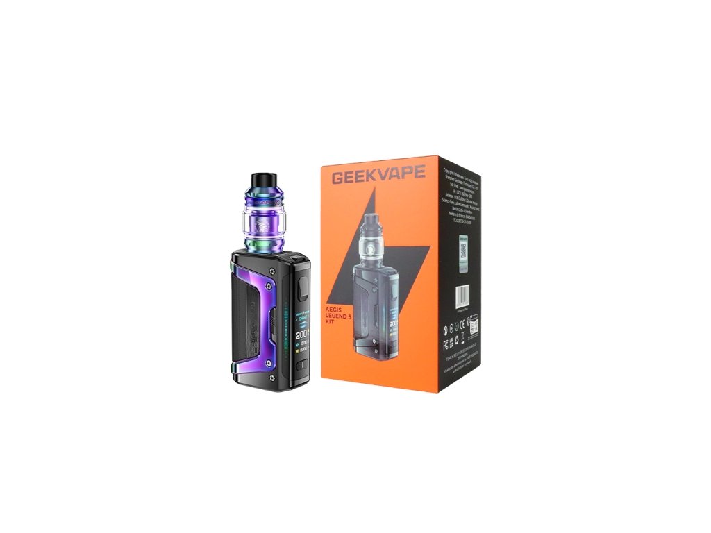 Geekvape přináší novou verzi své velmi oblíbené Aegis Legend sady. Ta se sestává z dvoubaterkového módu Aegis Legend 5 a DL atomizéru Zeus Sub-Ohm. Sada přináší lehce poupravený vzhled, čipovou sadu AS 4.0 s celou řadou výstupních režimů. Stejně jako u předchůdce jsou hlavními přednostmi 200W výkonu, podpora dvou 18650 baterií a díky technologii Geekvape Tri-proof disponuje ochranou proti vodě standardu IP68, proti prachu standartu IP6X a nárazy. Objem atomizéru činí 5,5 ml.