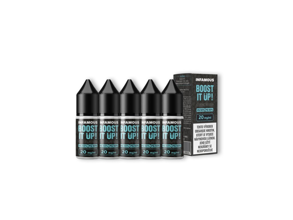 Po excelentních příchutích Infamous rádi přinášíme na trh i nikotinové boostery tohoto skvělého výrobce. Boostery Infamous obsahují 20mg/ml nikotinu (free-base). Stejně, jako příchutě výrobce, i jeho boostery jsou vyrobeny v nejvyšší jakosti a za přísných laboratorních podmínek.