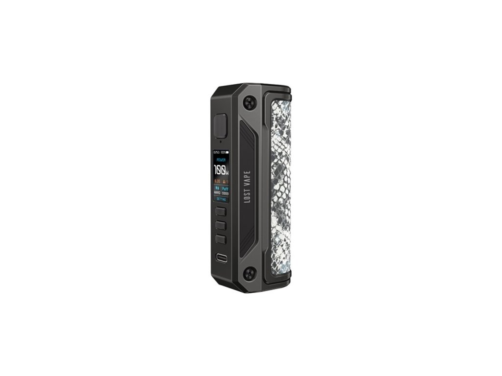 Vzhledu módu dominuje styl high-tech, skládá se proto s ostrých hran, přechodových ploch i výrazných šroubků spolu se zapuštěnými plochami, opatřenými logem Lost Vape. Přední strana módu je vybavena celkem čtyřmi tlačítky pro snadné a pohodlné ovládání, jehož postup lze sledovat prostřednictvím přehledného barevného TFT displeje. Nechybí však ani inovativní port USB-C pro snadné nabití baterie bez potřeby jejího vyjmutí z módu. Výjimkou je pak zadní strana, jež obsahuje příjemné zakulacení s pravou kůží nebo karbonovou vrstvou. Současně je strana odnímatelná a pod ní se nachází bateriový slot.