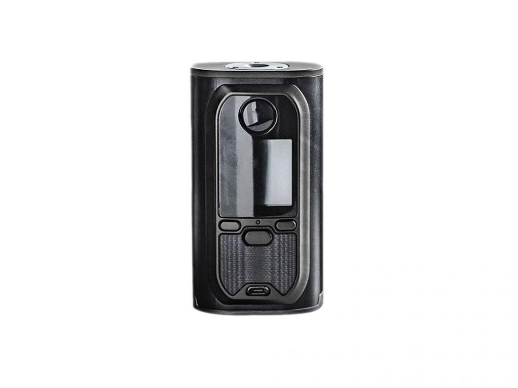 Zepředu najdete lehce vypouklý panel s velkým displejem a tlačítky pro jeho pohodlnou obsluhu. Obzvlášť velké pozornosti se dostalo nejdůležitějšímu prvku a to tlačítku žhavení, které je dostatečně velké, umístěné na přední straně nad displejem. Mód tak budete spínat stejně jednoduše, jako zmáčknutí spoušťě u zbraně. Jeho konstrukce se netradičně celá skládá z poloprůhledného materiálu Ultem, který se doposud používal jen pro driptipy u kvalitních atomizérů, nyní však budete mít stejně kvalitní materiál v rámci celého módu.
