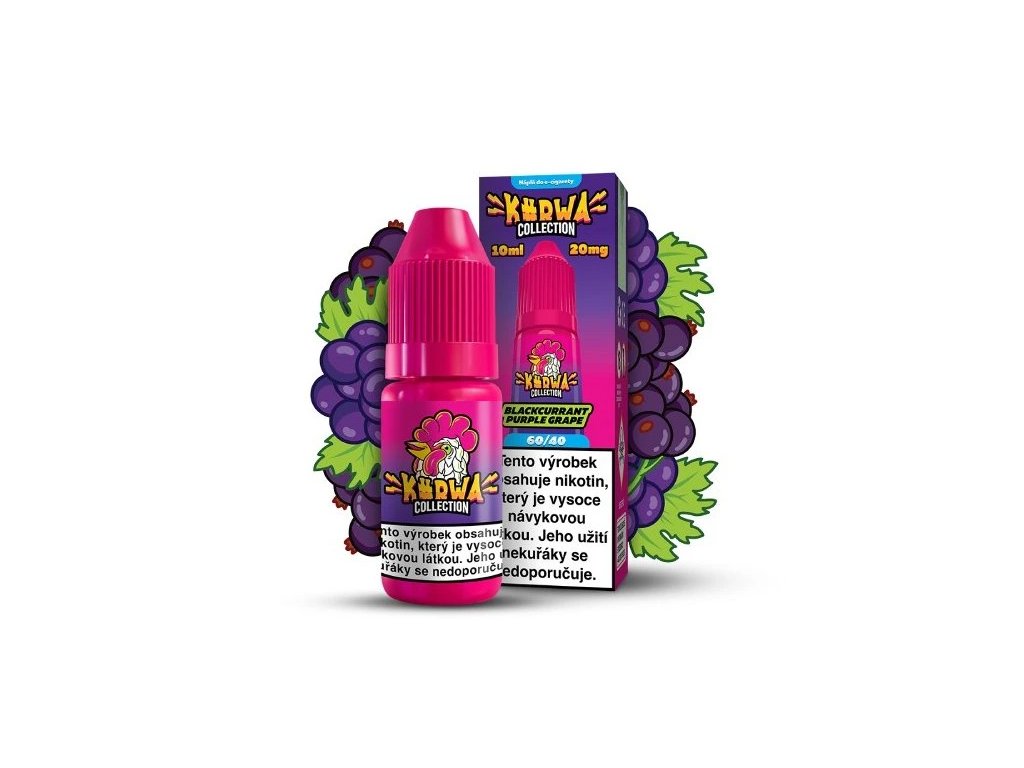 Tato Nic Salt náplň od značky KURWA přináší intenzivní a hutnou fúzi chutí: sladký, ale lehce trpký černý rybíz je dokonale doplněn populárními, sladkými červenými hrozny.