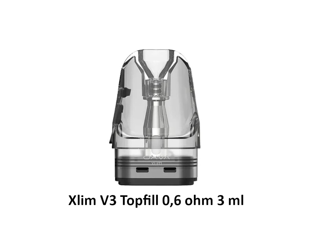 Náhradní topfill cartridge pro sérii Oxva Xlim v přepracovaném vydání s 3ml objemem. Disponuje stejným systémem plnění jako 2ml verze a nabízí stejný kanthalový mesh o odporu 0,6 ohm.