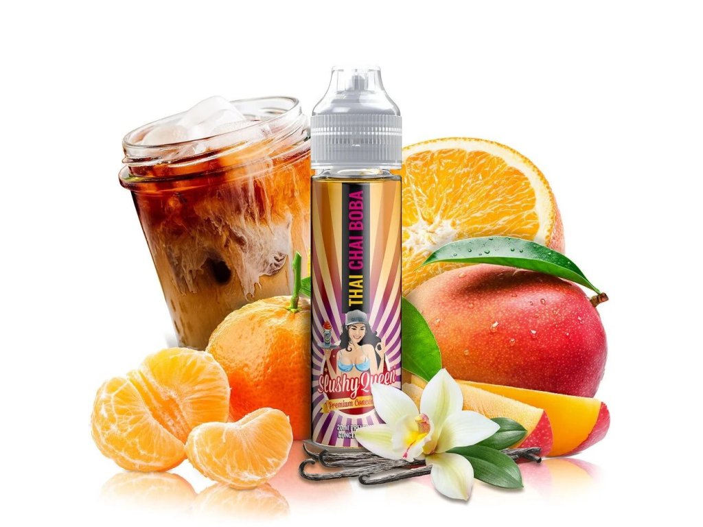 Slushy Queen Thai Chai Boba On The Roxx je thajský čaj s vanilkou, mangem, pomerančem a mandarinkou. Ideální letní osvěžení od PJ Empire!