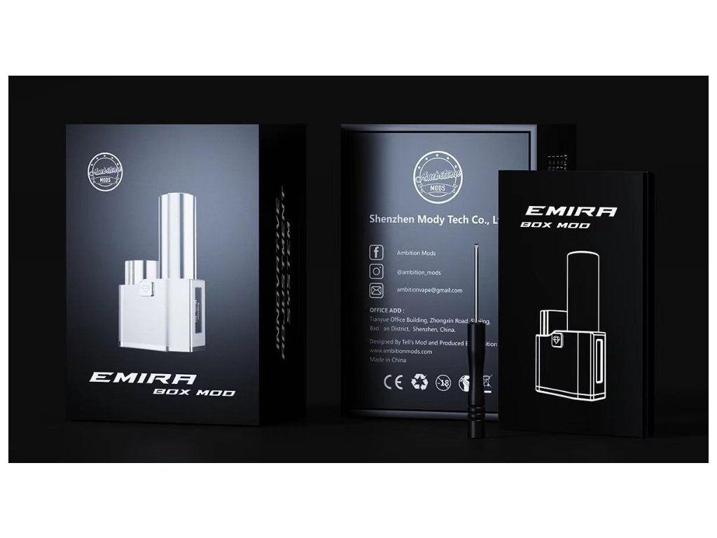 Ambition Mods spolu s Telli přináší nový SBS mód Emira. Nabízí výkon 60 W a slot pro jednu 18650 baterii. Tohle jsou parametry, které nijak nepřekvapí. Co je však na módu neobvyklé, to je vysouvací tubus s centpinem. Ten lze natáhnout až o 13mm do výšky. Tubus tedy lze variabilně upravovat výšce atomizéru tak, aby bez ohledu na svou výšku s naústkem hezky vyčníval nad tubus baterie.