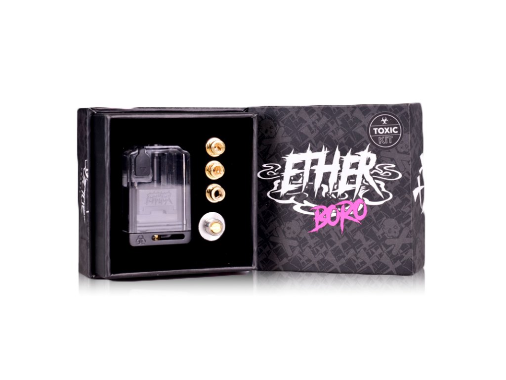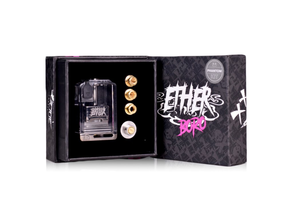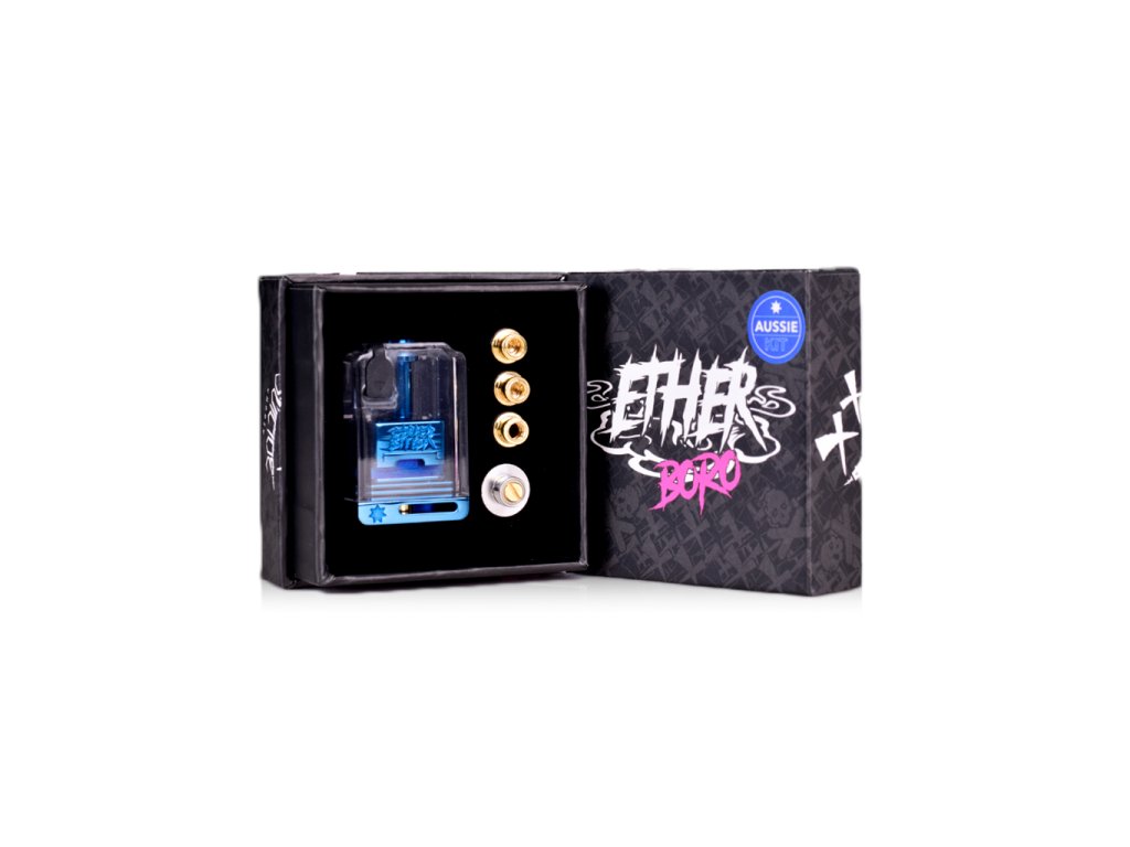 Ether Boro RBA Bridge disponuje jednospirálkovou šroubkovou základnou, který umožňuje dost místa i pro rozměrnější námoty. Součástí sady je také 4 různých velikostí pozlacených airflow pinů, které umožňují uživateli nastavit vzduch přesně dle stylu vapování. Dva velké otvory pro vatu usnadňují absorpci vaty liquidem i pro nízkoodporové DL námoty.