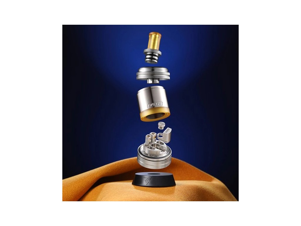 Srdcem Blaze MTL RTA je jeho jednospirálková, postová základna, která poskytuje dostatek prostoru pro moderní MTL buildy. Tuhost potahu si můžete do nejmenšího detailu přizpůsobit pomocí vyměnitelných AFC pinů, které se instalují přímo pod spirálku do výsuvného adaptéru. V balení jsou k dispozici průměry: 0.8, 1.2, 1.4, 1.6, 2.0, 2.5, 3.0, 3.5, Honeycomb - AFC pin s 9 menšími dírkami. Je tak pokrytá široká škála napříč MTL a RDL potahy, kdy je dosažení požadovaného odporu vzduchu přesně podle vašich preferencí hračka.