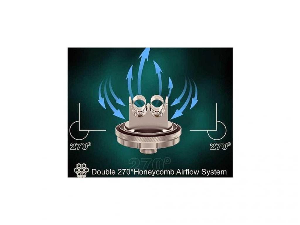 V základně je celkem 46 dělených airflow vývodů a vzhledem ke strategickému rozmístění a přívodu pod úhlem 270° poskytují až perfekcionistické pokrytí vzduchem napříč spirálkami. Vzduch je tedy přiváděn nejen drobnými bočními otvory, ale také většími otvory pro pokrytí co největší plochy. Můžete se proto spolehnout na příjemně vzdušný potah, kombinovaný prvotřídním zpracováním chuti do nejmenších detailů.
