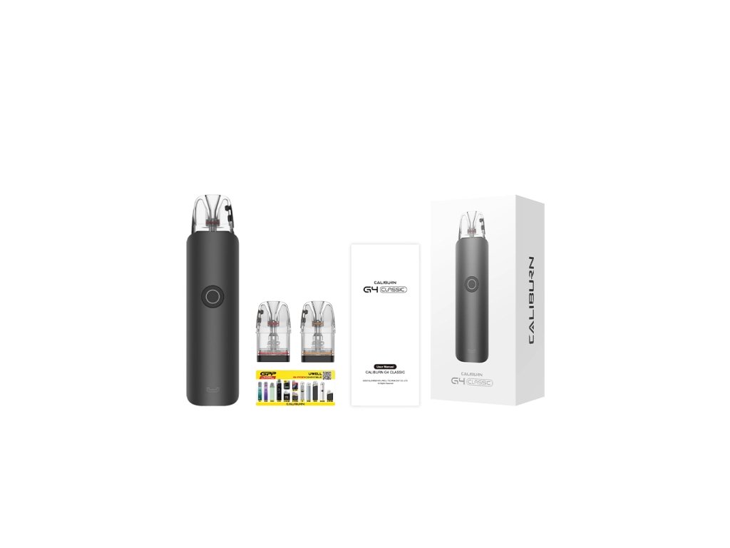Caliburny G jsou zařízení, které si svou jednoduchostí a jedním z nejlepších chuťových podaní, vydobyly vskutku silné renomé. Caliburn G4 Classic mimo 35W výkonu a obří 1400 mAh baterie láká také na estetiku. Tělo je nanejvýš minimalistické a premiově zpracované z CNC anodizovaného hliníku.