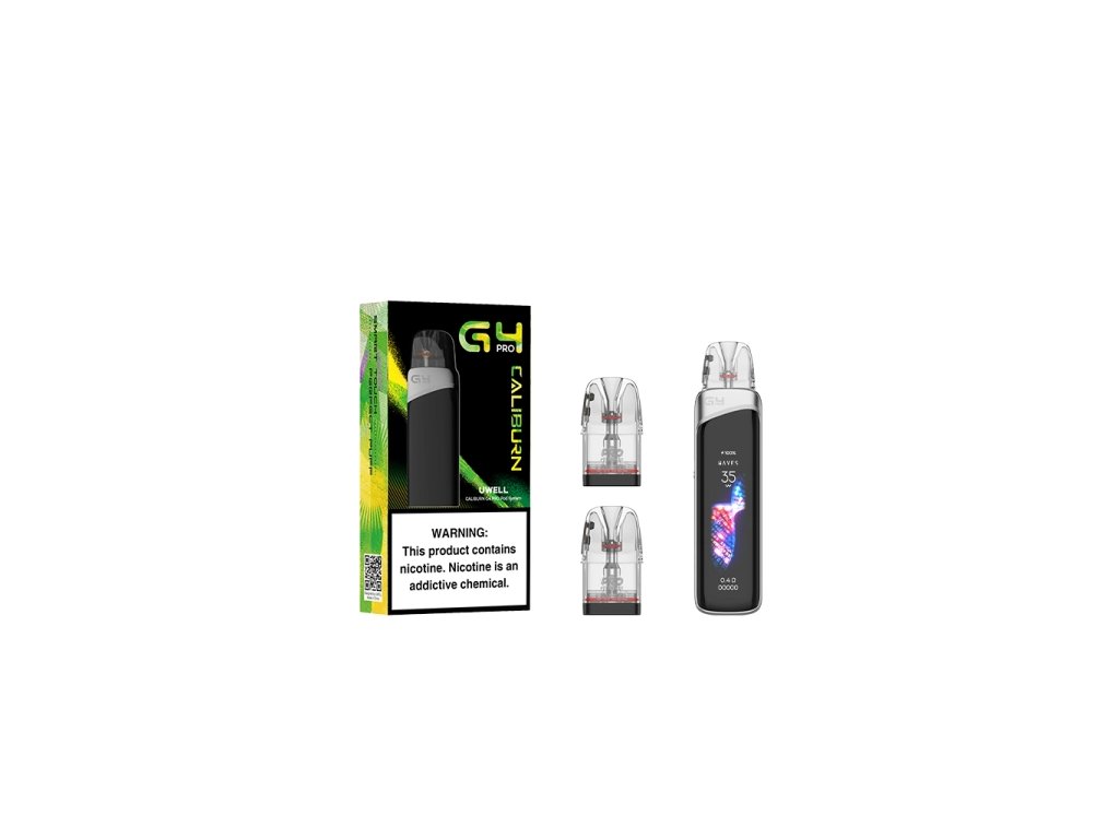 Uwell Caliburn G4 Pro je moderní POD systém, který kombinuje elegantní design s technickými inovacemi, jako jsou výkonná 1800 mAh baterie, dotykový displej a inteligentní uživatelské rozhraní.