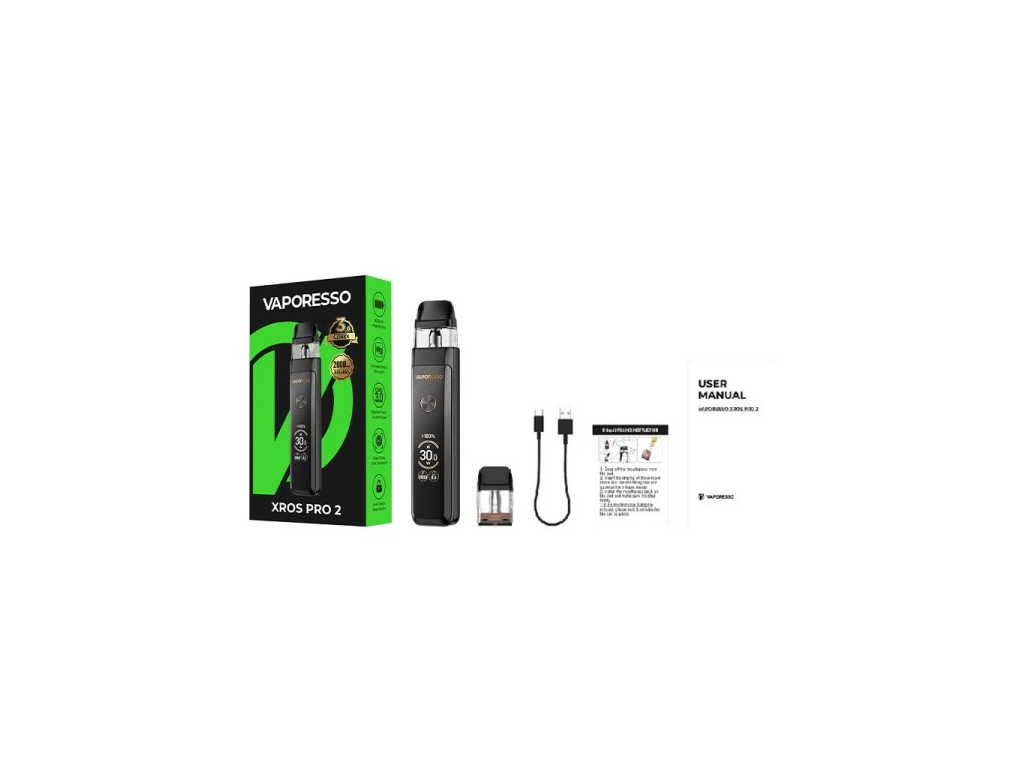Vaporesso XROS Pro 2 je prémiový pod systém, který i při muší váze 65 g ukrývá ohromnou 2000mAh baterii s rychlým nabíjením. Tělo z letecké hořčíkové slitiny disponuje přehledným 0,96" displejem a chytrým čipem AXON s výkonem až 30 W. Dokonalou chuť a dlouhou výdrž obstarávají přiložené 2ml cartridge s technologií COREX 3.0, pohodlným vrchním plněním a plynulou regulací airflow pro pomezí MTL a RDL potahu.