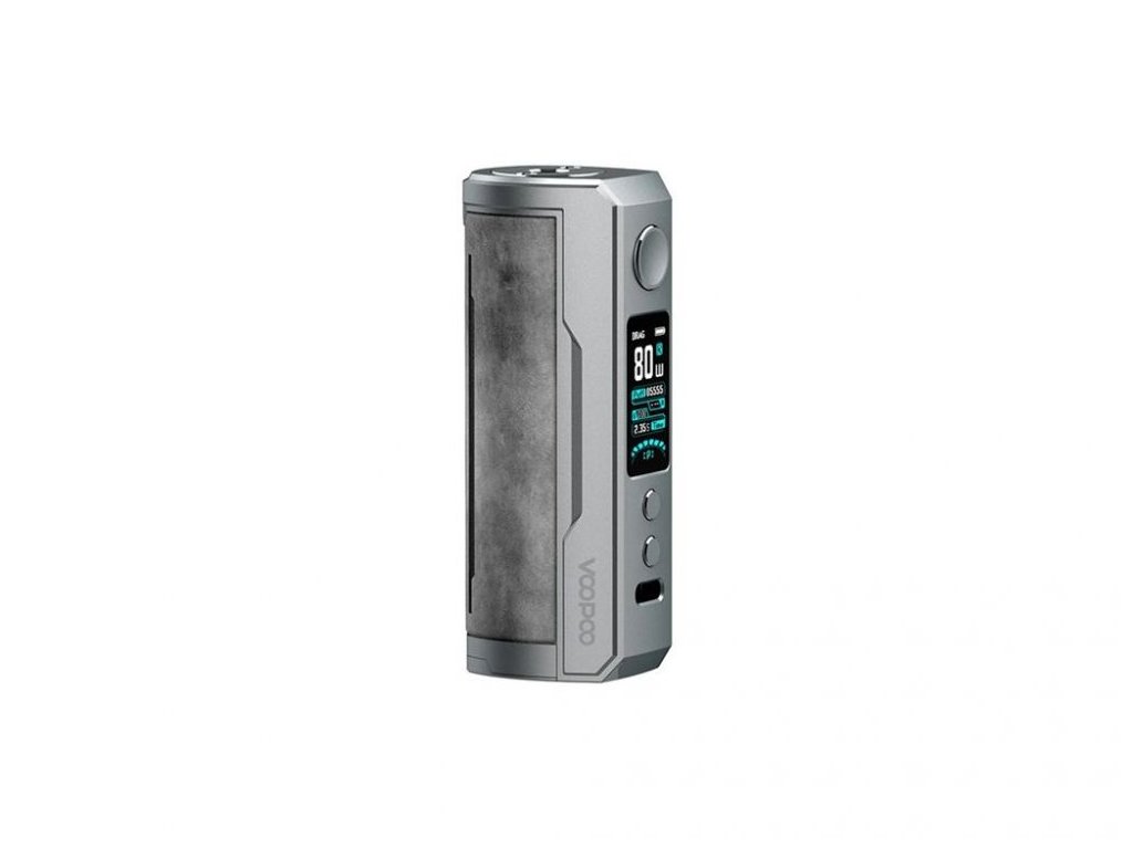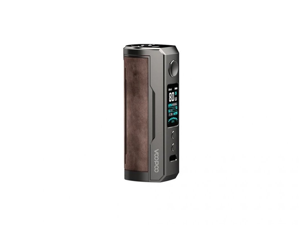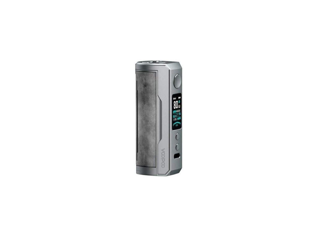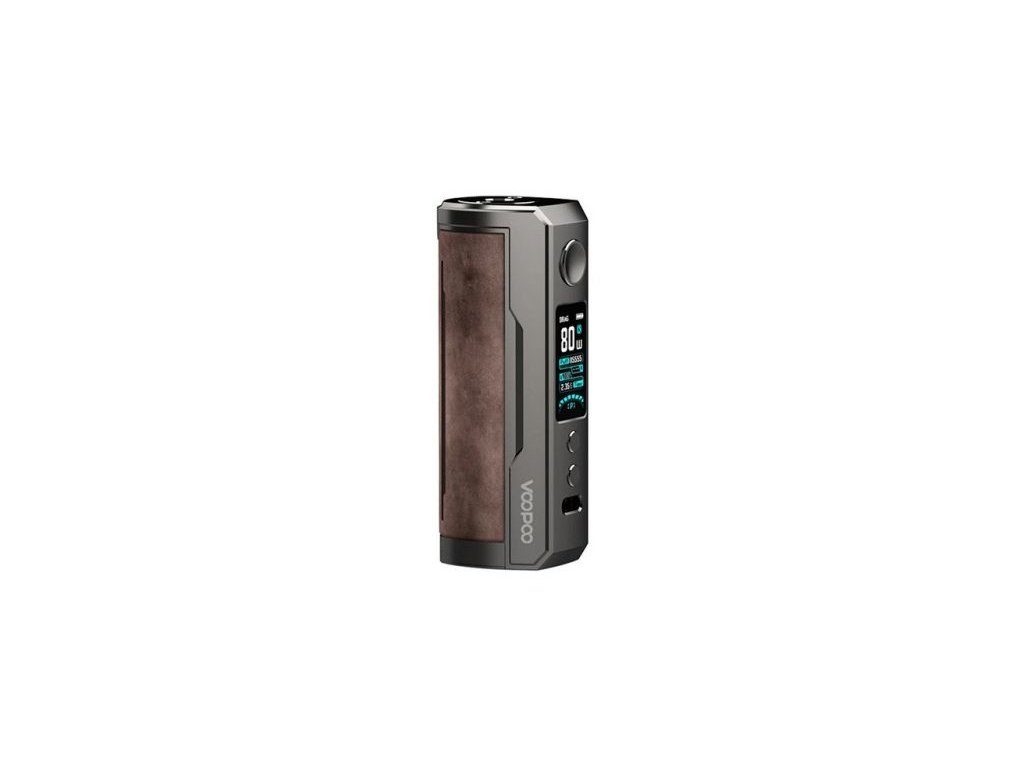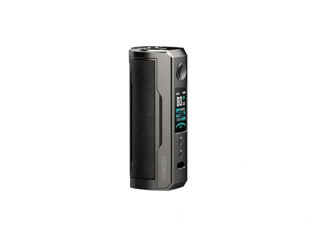 Tělo VooPoo DRAG X Plus tvoří kvalitní zinková slitina a pocit exkluzivity dotváří výrazná vložka z měkčené kůže s vyraženým logem DRAG X Plus. Bohatě dimenzovaná základna pojme libovolný atomizér typu 510 až do průměru 29mm.