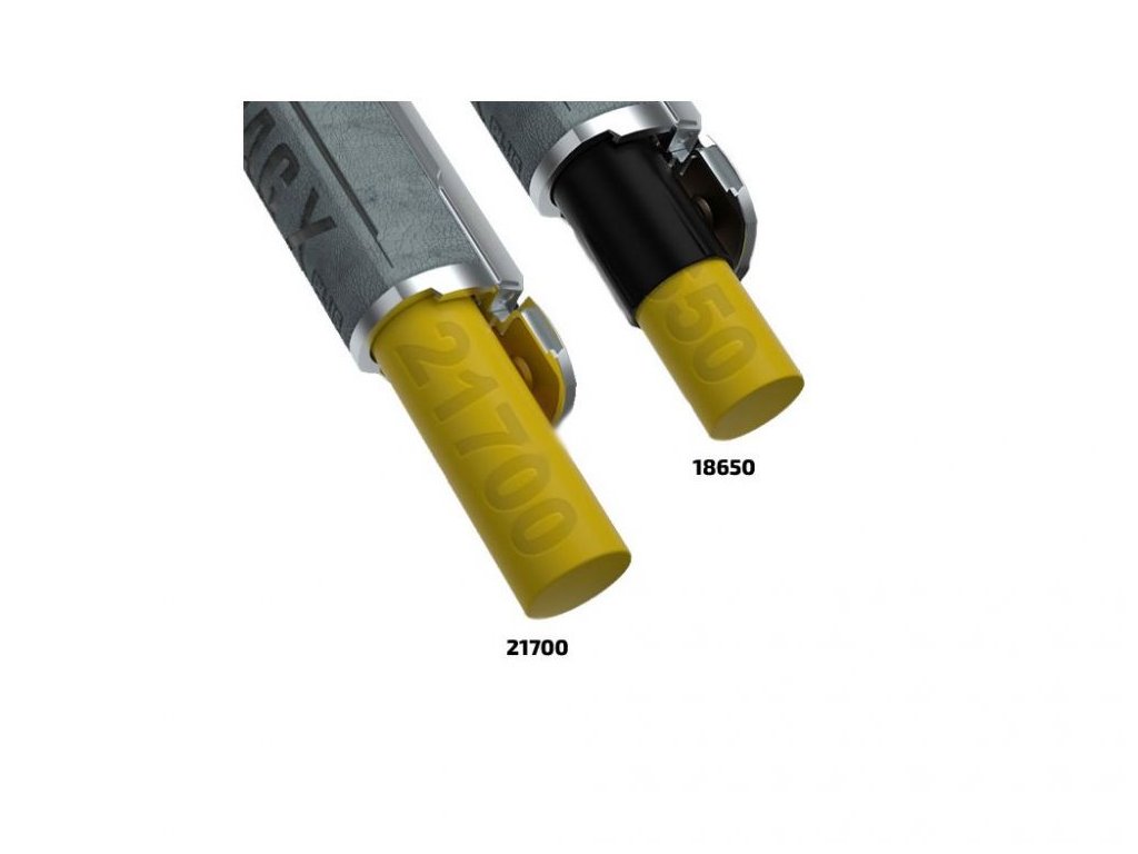 POZOR! Balení neobsahuje baterie. Baterie typu 21700 je nutné dokoupit samostatně. Pro správnou funkci potřebujete baterii s vybíjecím proudem minimálně 25A.